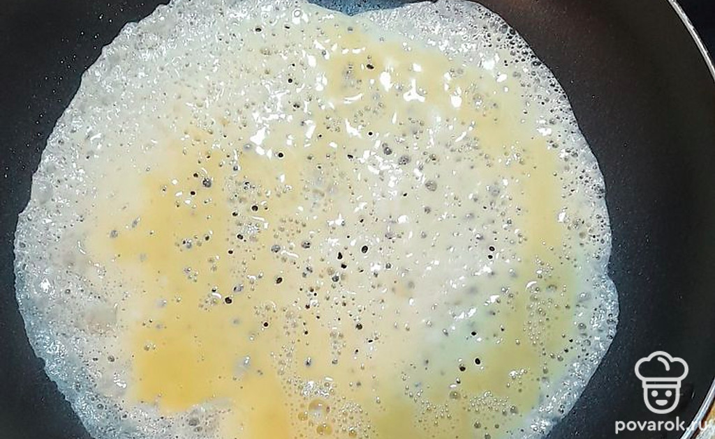 Взбитые яйца вылить на сковородку.