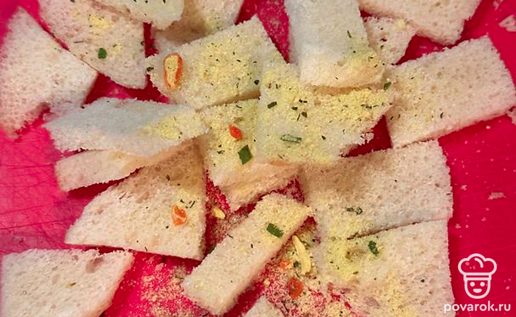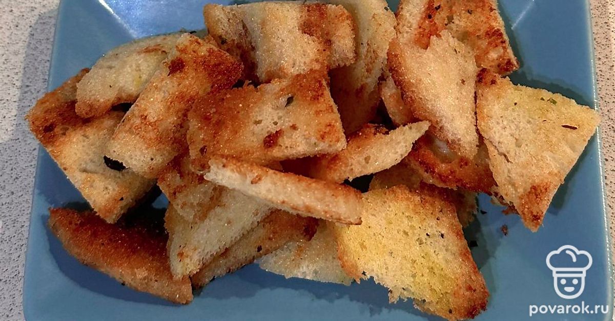 Домашние сухарики получаются очень вкусными и хрустящими. Обязательно попробуйте приготовить их по этому рецепту.