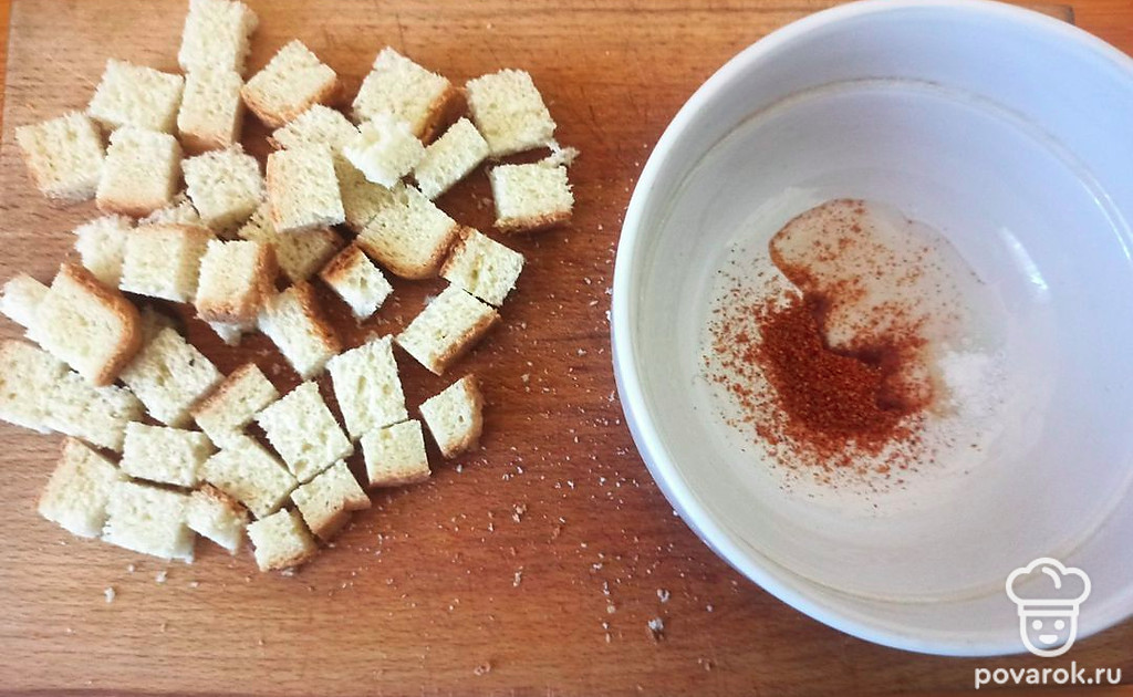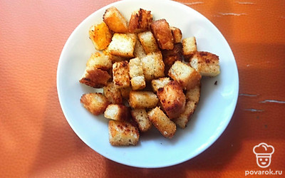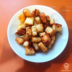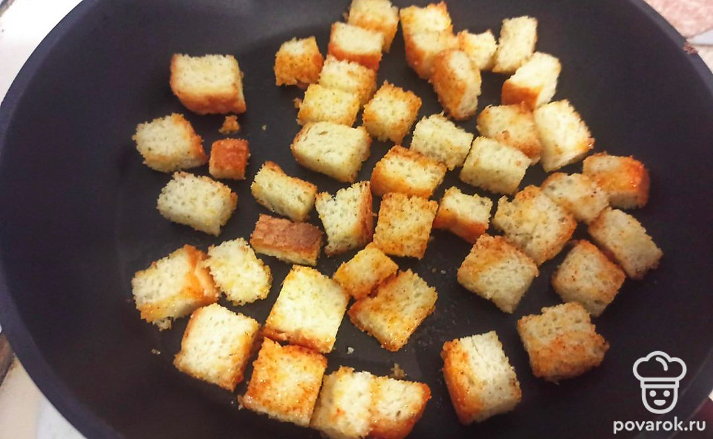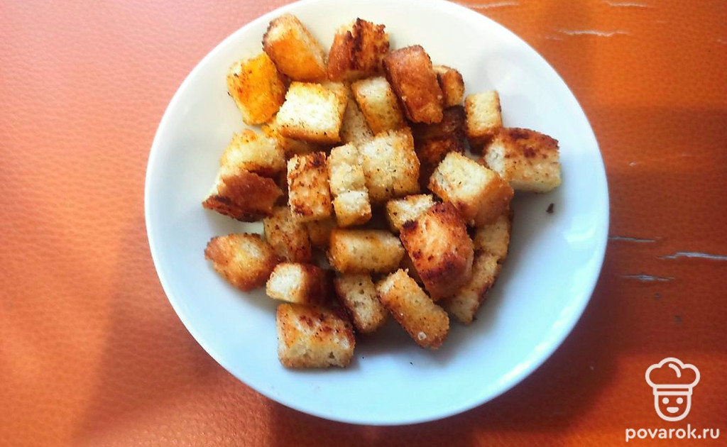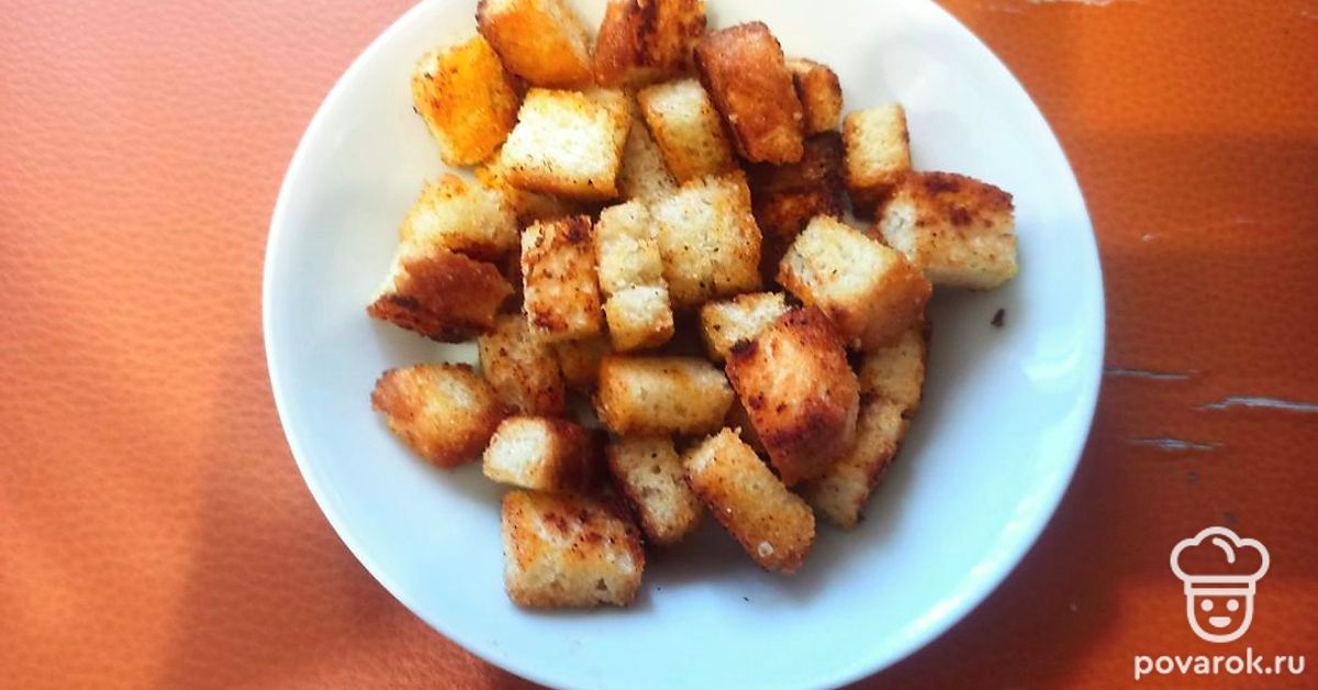 Вкусные и хрустящие сухарики из тостового хлеба на сковороде.
