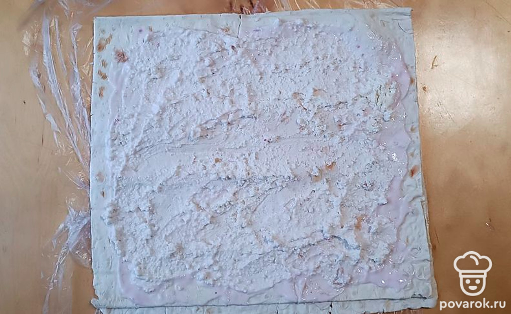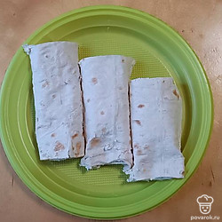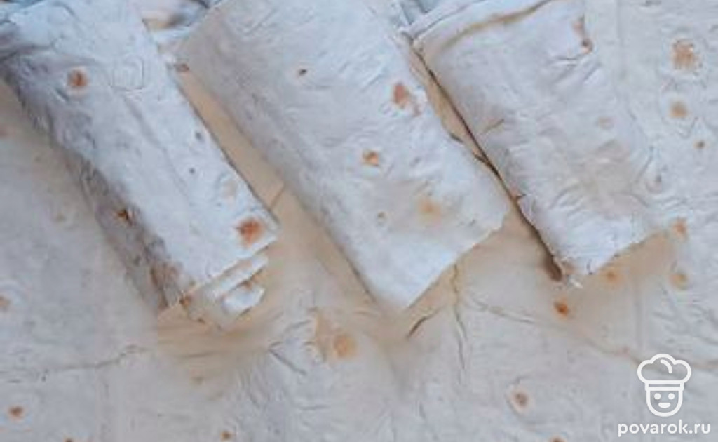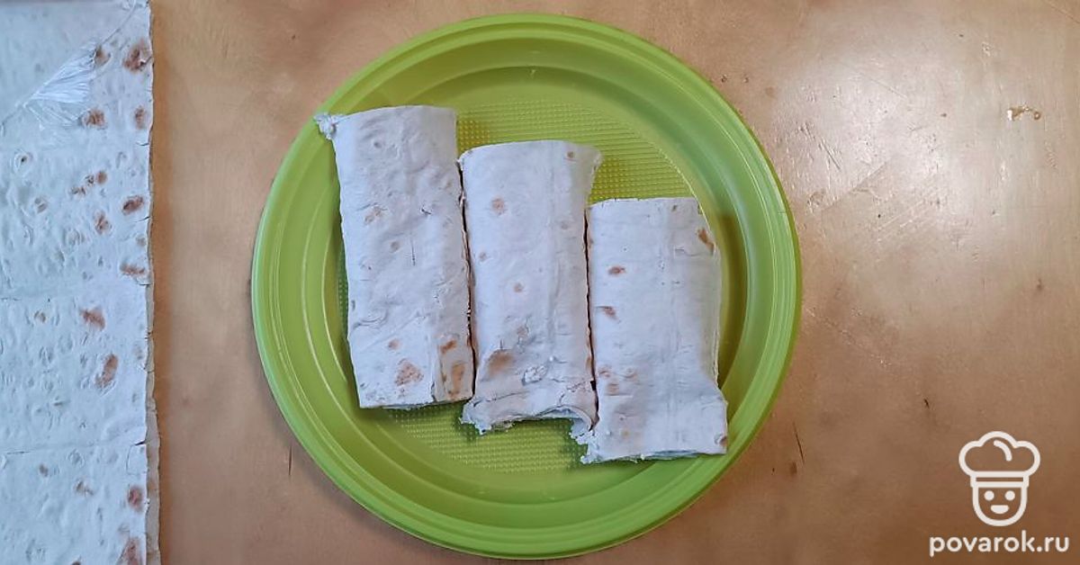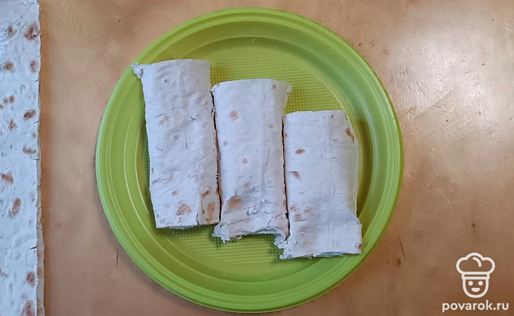 Свернуть лаваш, подождать 5 минут, разрезать. Можно не разрезать.