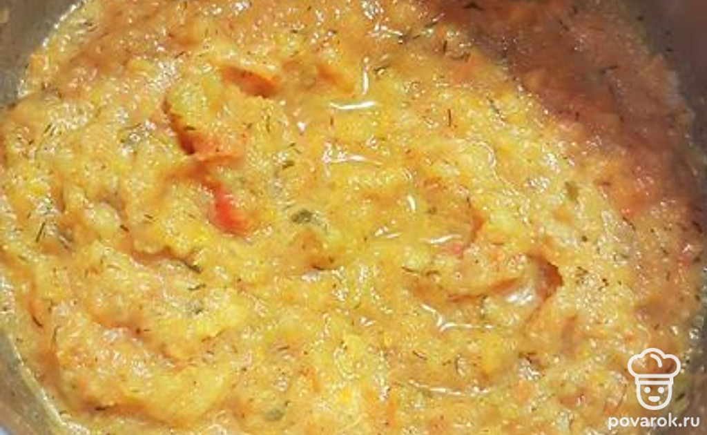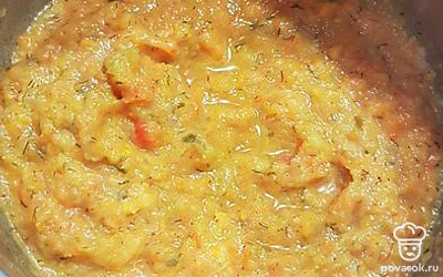Тушим 40 минут, остужаем и пробиваем блендером.
