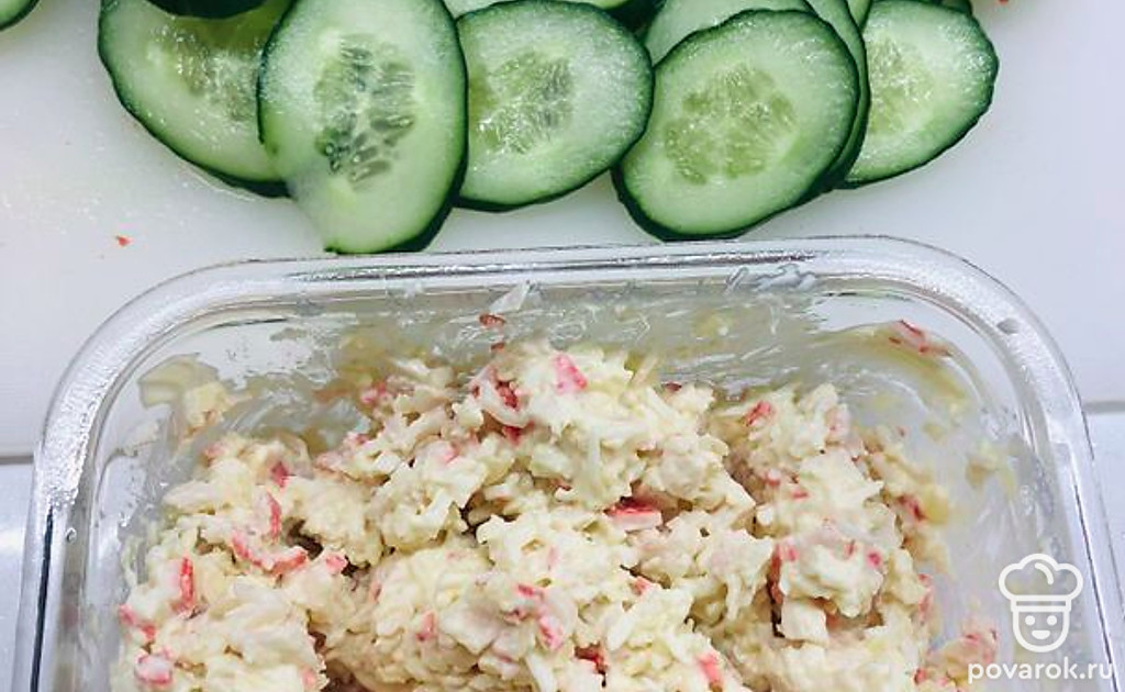 Салат из крабовых палочек очень распространен, но такая оригинальная подача понравится всем.