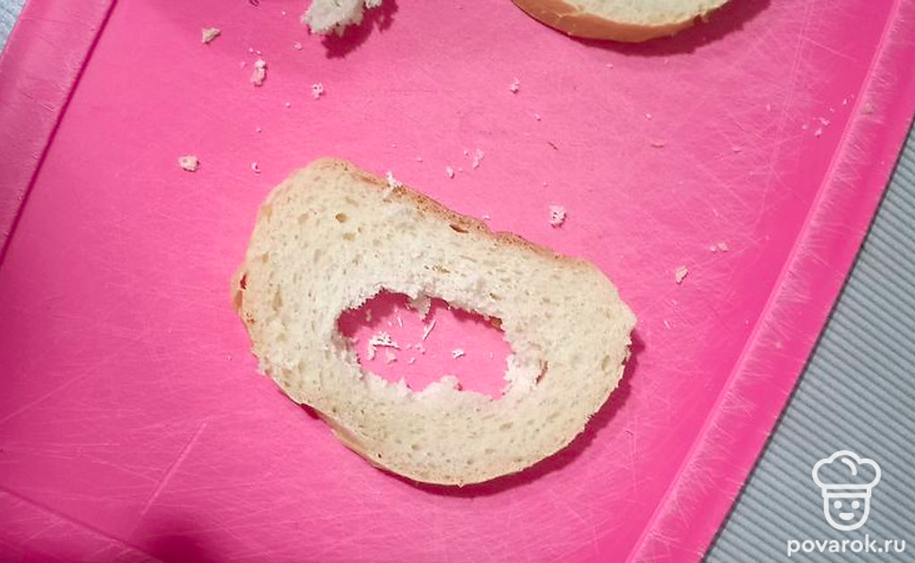 Отрезаем два кусочка батона.
