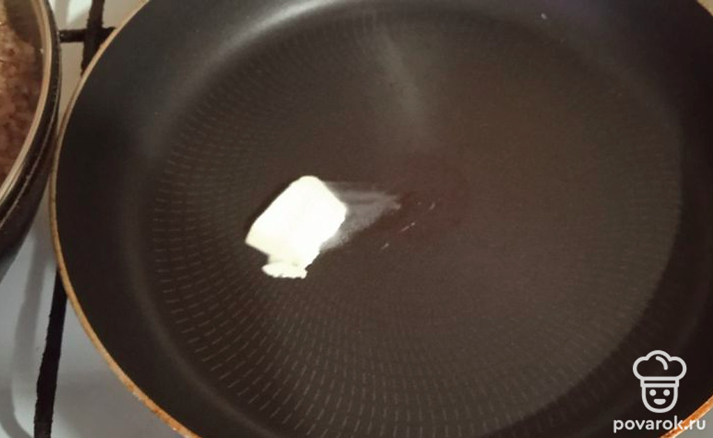 На разогретую сковороду добавляем кусочек сливочного масла.