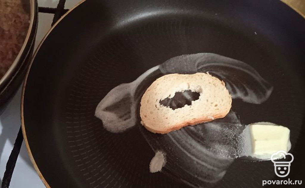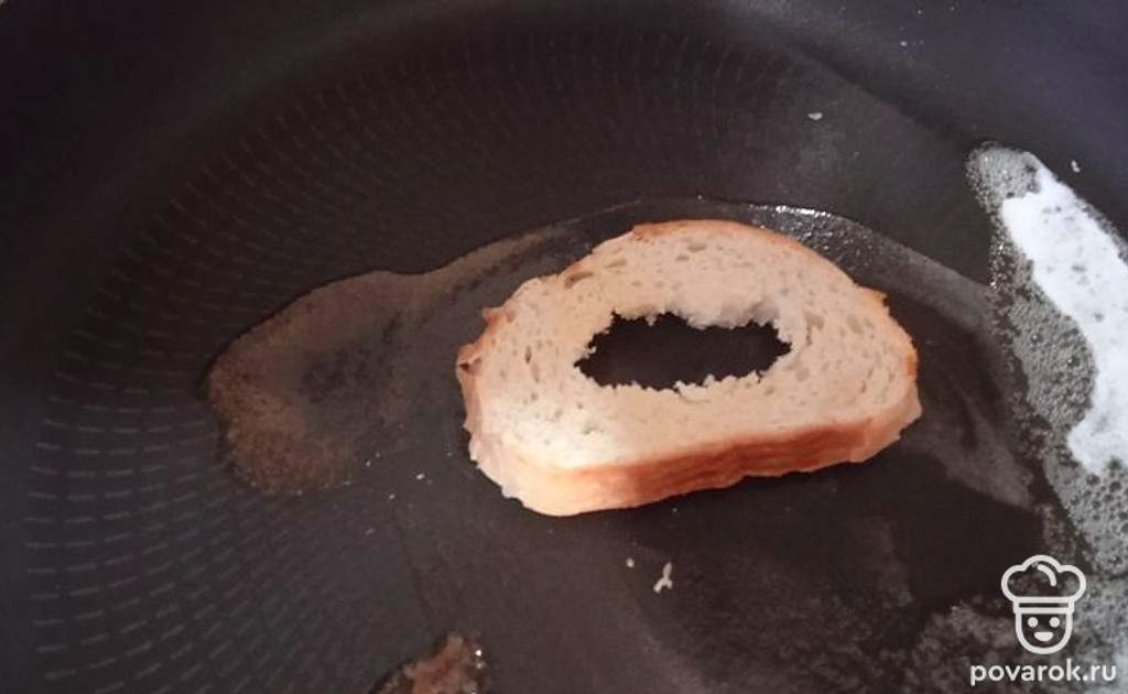 Обжариваем хлеб с двух сторон.