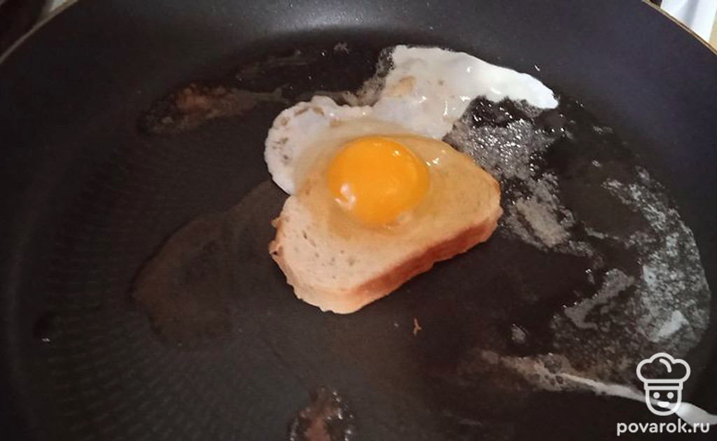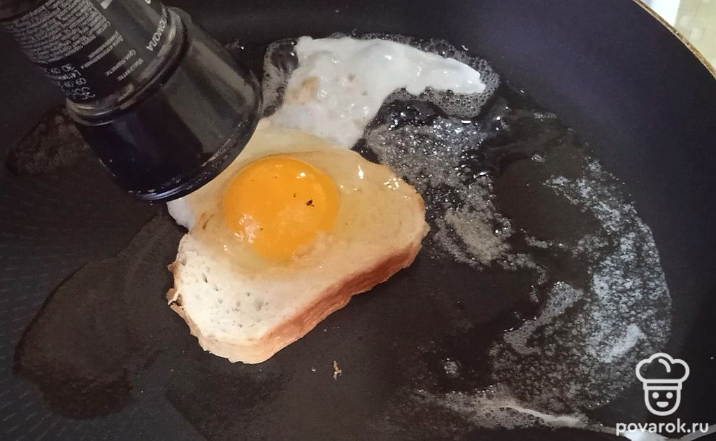 В середину вливаем яйцо.