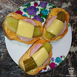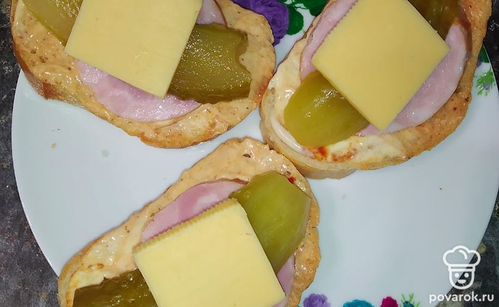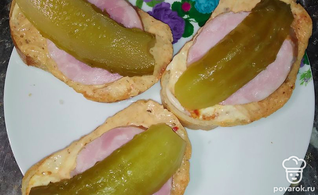 Бутерброды с колбасой, маринованными огурцами и сыром