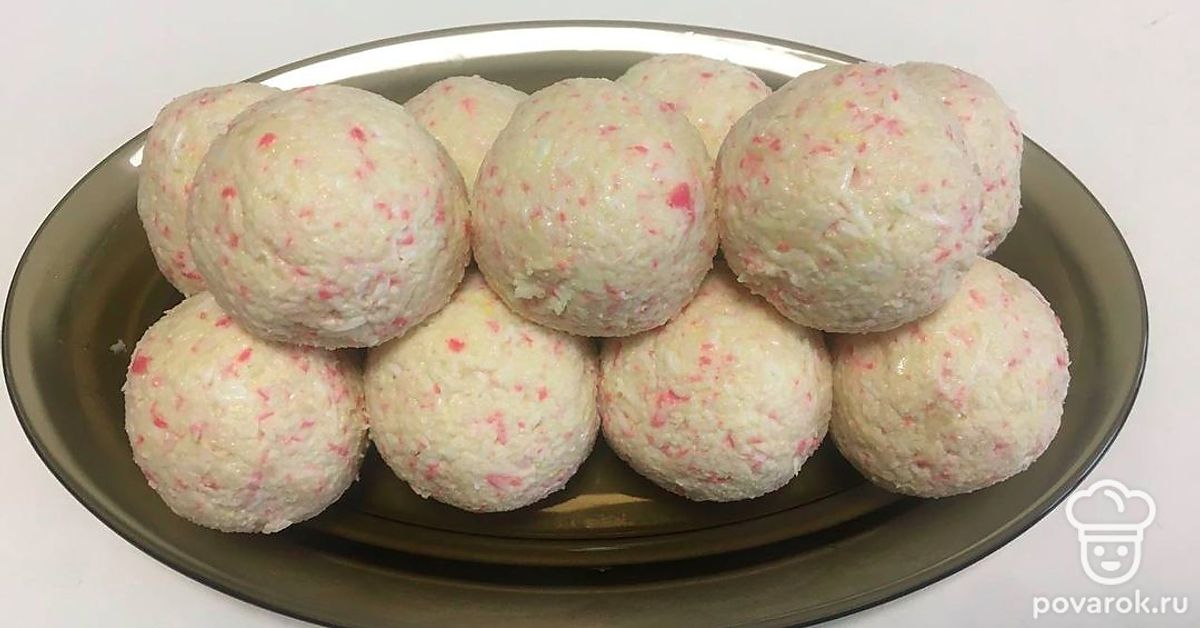 В миску добавляем майонез. Все тщательно перемешиваем. Формируем шарики как раффаэлки.