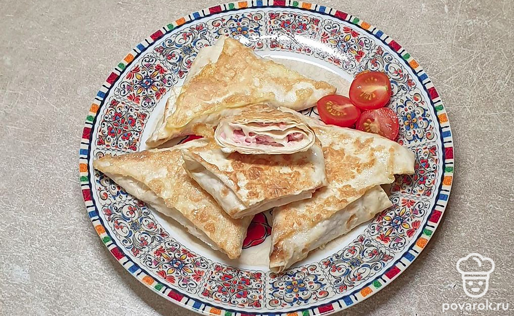 Очень вкусная закуска из лаваша с начинкой из колбасы и сыра. Готовится такое блюдо быстро.