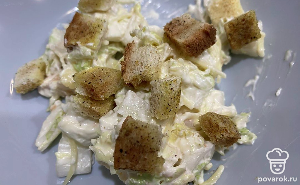 Вкусные сухарики готовы. Можно украшать ими салат. Приятного аппетита!