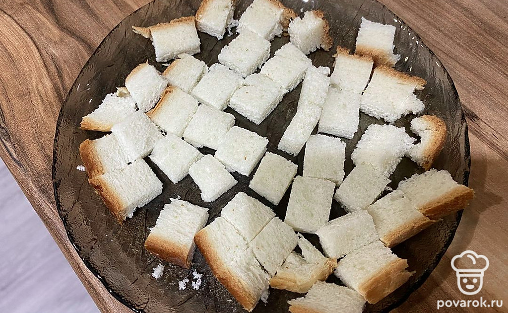 Нарезаем батон на кубики.