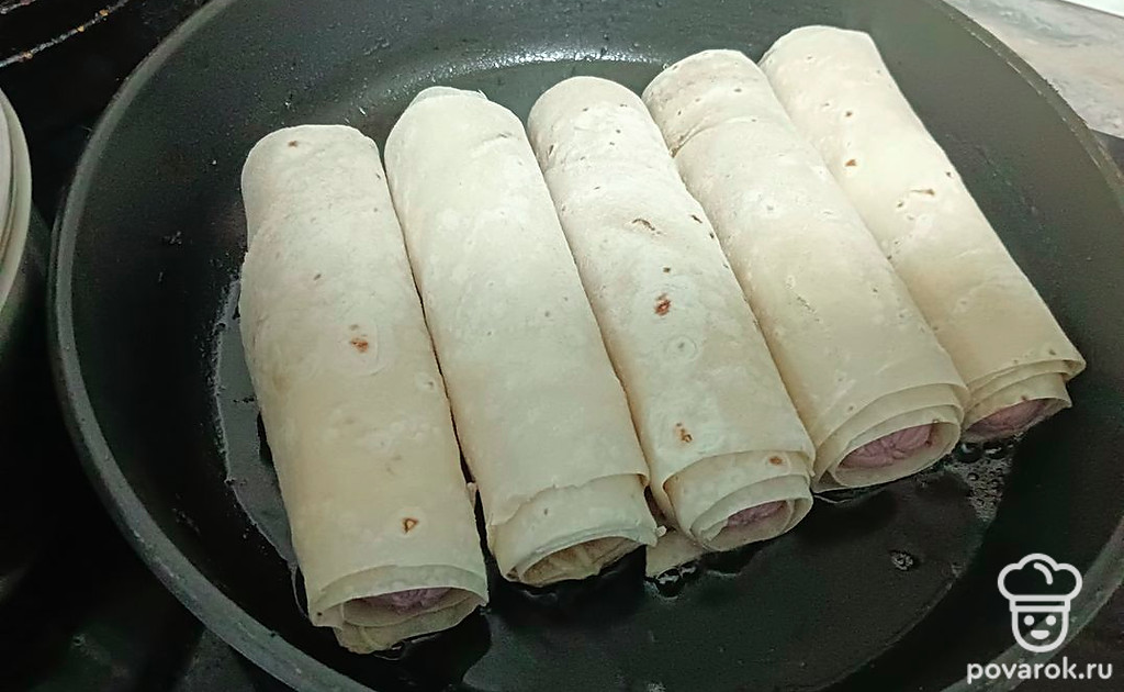 На разогретой сковороде обжарьте рулетики с каждой стороны до золотистой корочки.