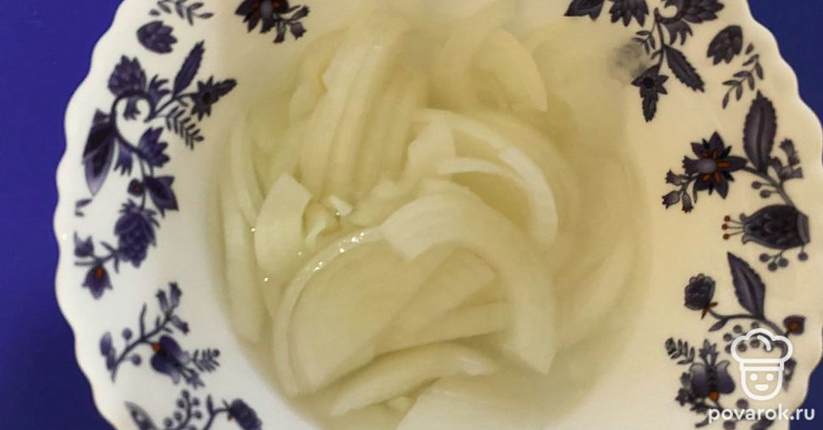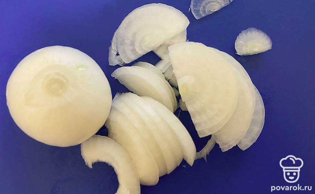 Нарежьте лук полукольцами (можно и кольцами, если больше нравится).