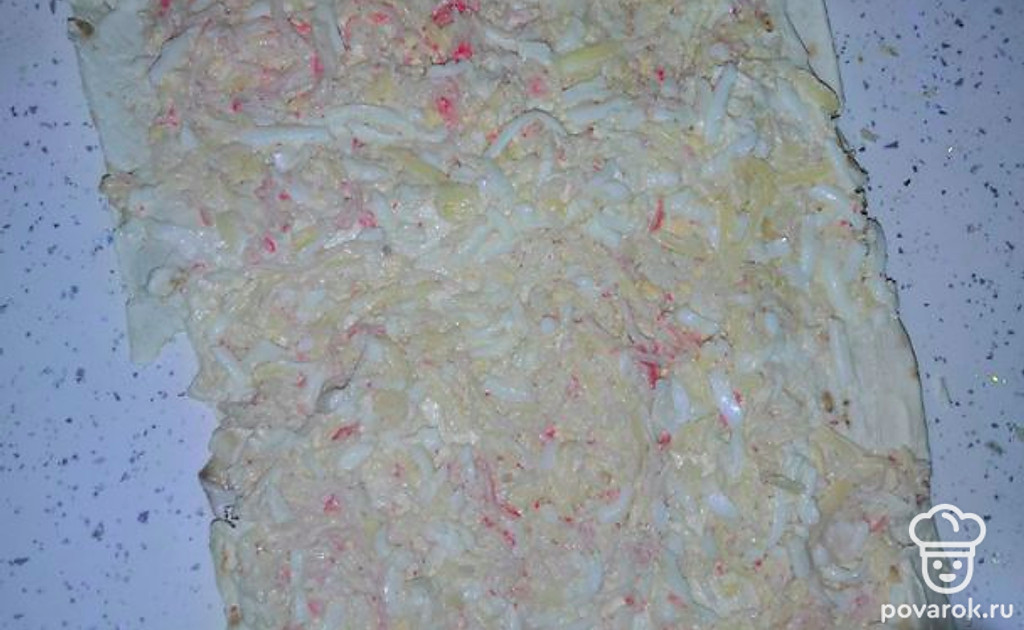Рулет из лаваша с крабовыми палочками и вареным яйцом