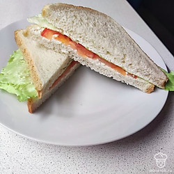 Аккуратно разрезать сэндвич по диагонали. Вкусный и полезный сэндвич готов. Подойдет для вегетарианцев.