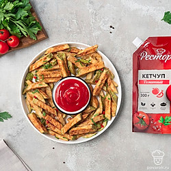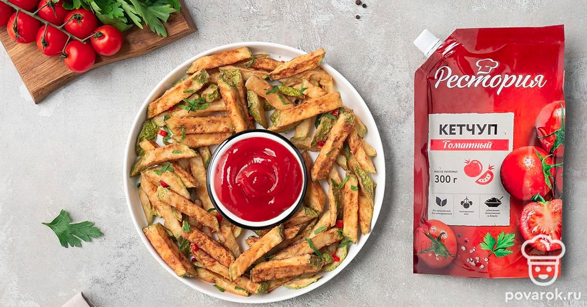 Подайте кабачки фри с кетчупом или любым другим соусом на ваш вкус