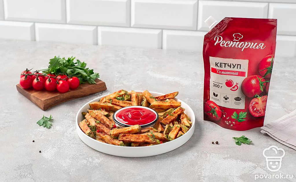 Во фритюре можно пожарить не только хрустящую картошку, но и другие овощи. Например, нарезанный тонкими брусочками кабачок. Обваляйте ломтики в смеси муки и специй, а затем отправьте в горячее масло — кабачки-фри пожарятся меньше чем за 1 минуту. Обязательно подайте их горячими, пока хрустящая панировка не размякла. А ароматный кетчуп очень хорошо дополнит закуску.