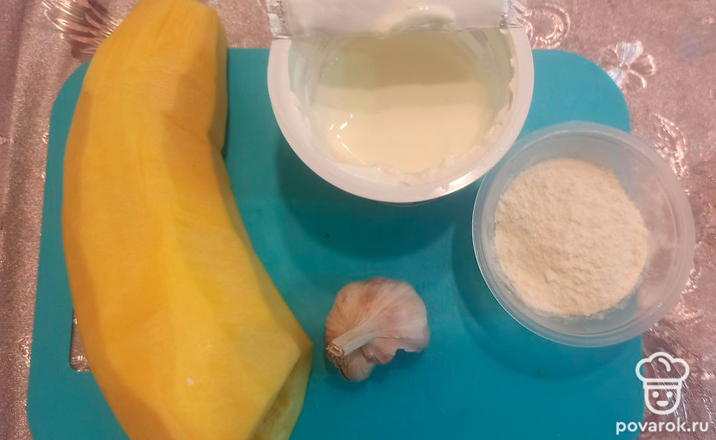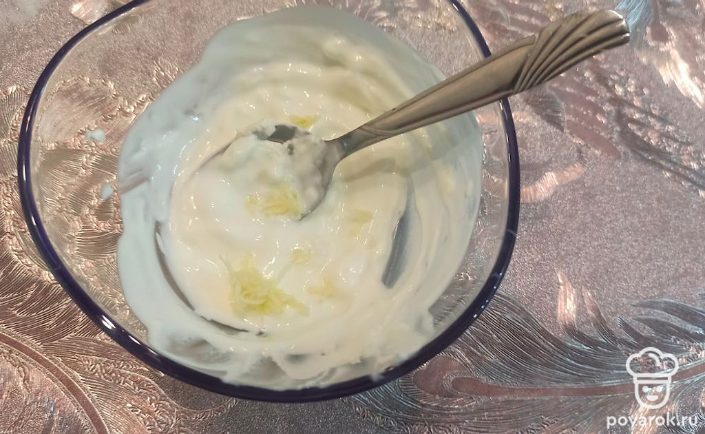 Чеснок натираем на мелкой терке и смешиваем со сметаной.