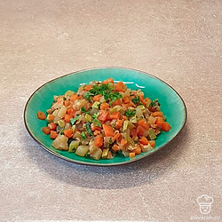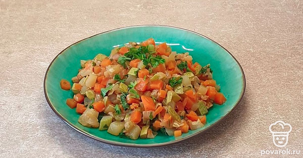 Вкусное соте из овощей. Замечательный легкий гарнир к мясу или рыбе, также можно подавать как самостоятельное блюдо.