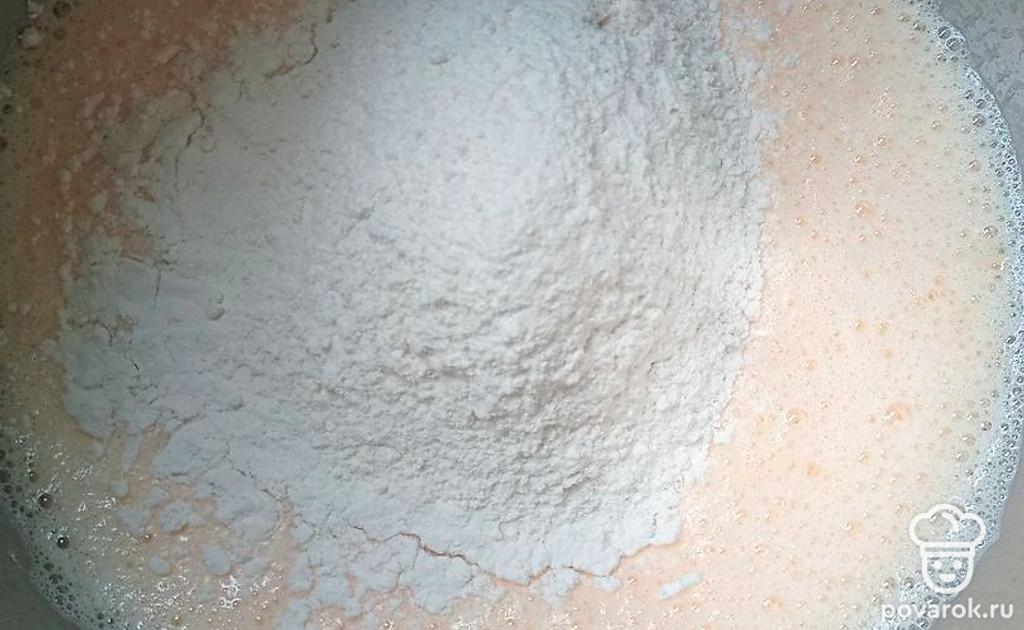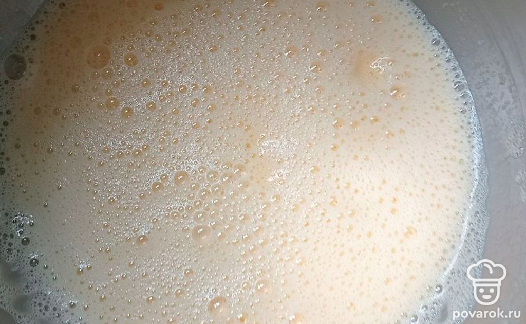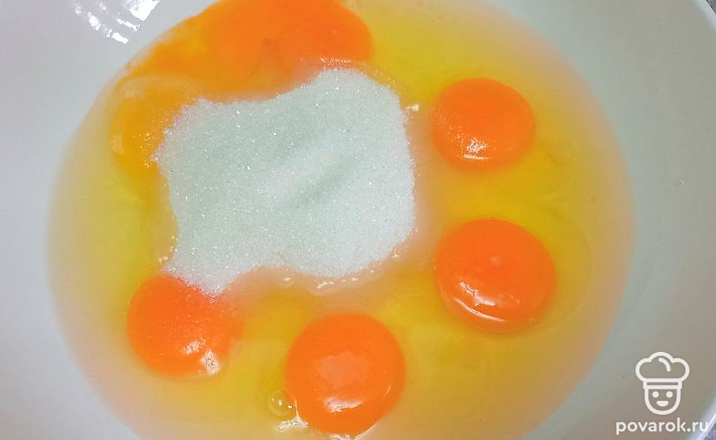Яйца смешайте с сахаром. Если яйца крупные, можно взять 4 штуки.