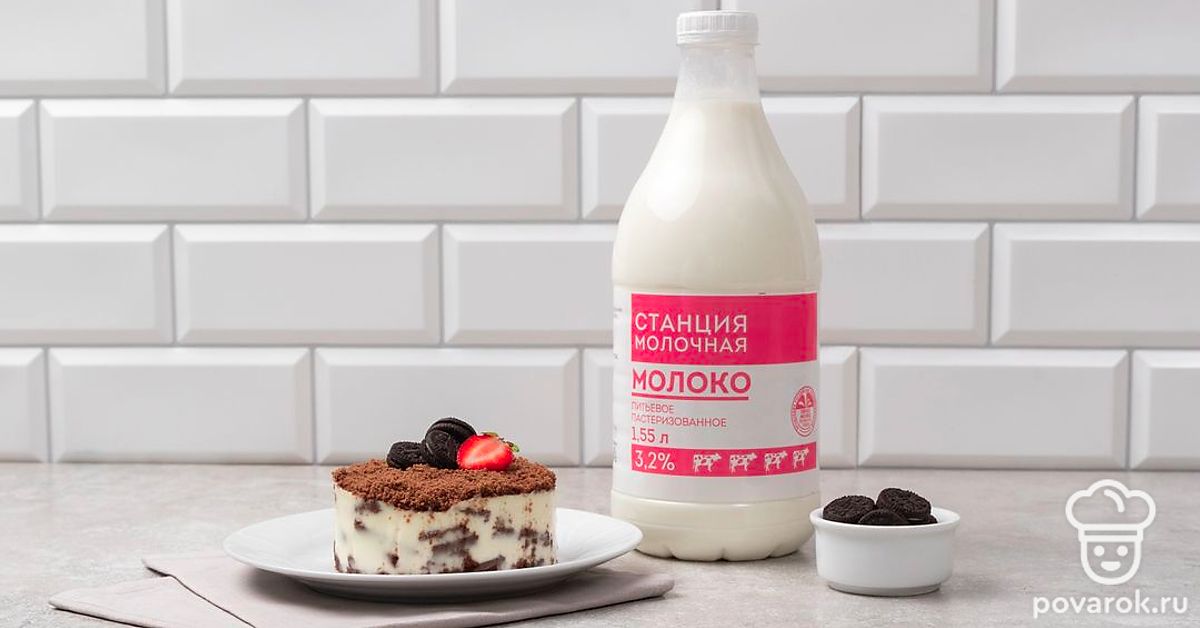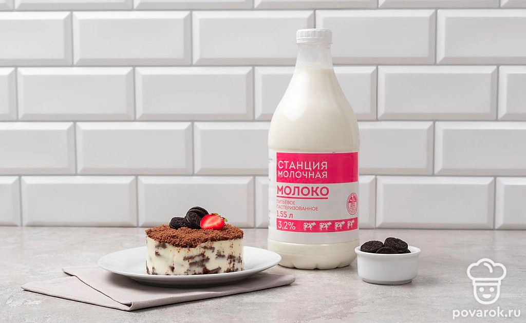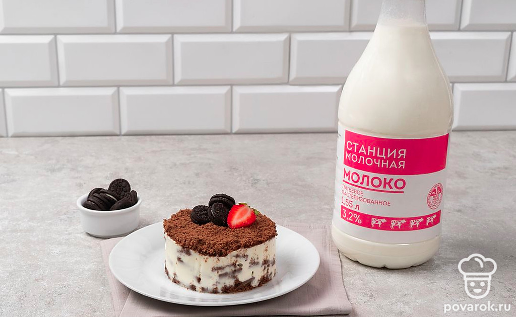 Если хочется приготовить что-нибудь сытное и сладкое, но при этом не проводить на кухне полдня, то этот рецепт для вас. Возьмите простое шоколадное печенье и высокую форму подходящего размера. С кремом можно экспериментировать, заменяя сметану на йогурт, а коровье молоко — на кокосовое. Дайте торту хотя бы 2 часа на застывание, а при подаче обязательно украсьте свежими ягодами.