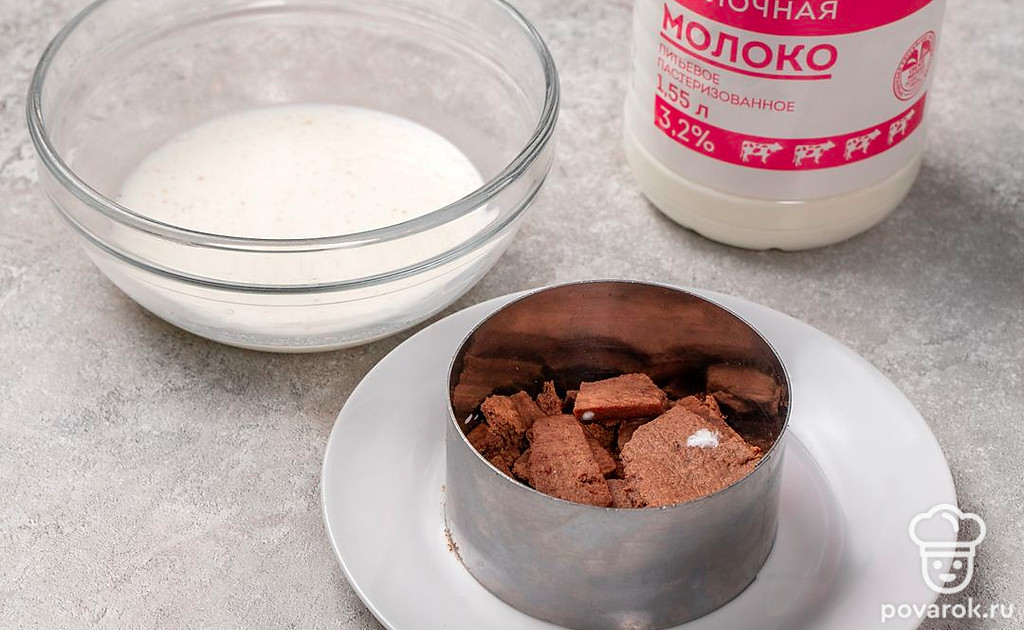 Каждое печенье обмакните в молоко и положите в один слой на дно формы. 2-3 печенья отложите в сторону.