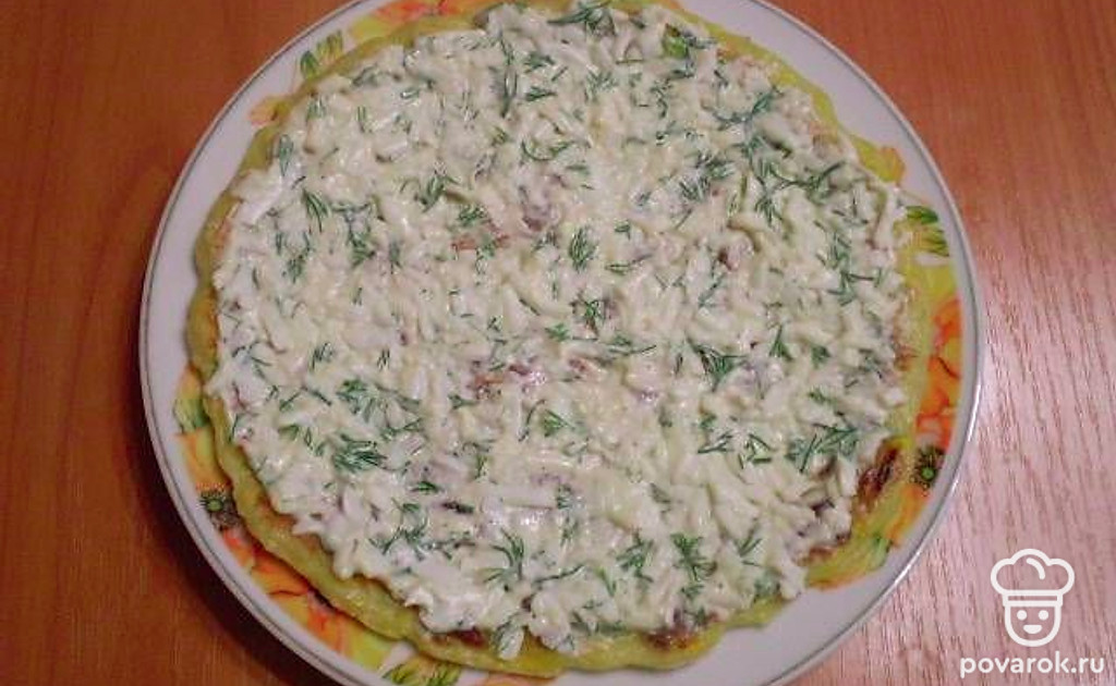 Приготовить соус (2 ложки сметаны, 2 ложки майонеза, 2 зубчика чеснока, пропущенных через пресс, и мелко нарезанная зелень).