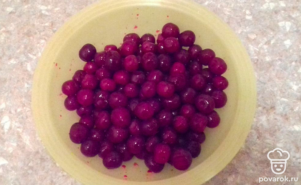 Вишню освободите от косточек. Если она замороженная, разморозьте.