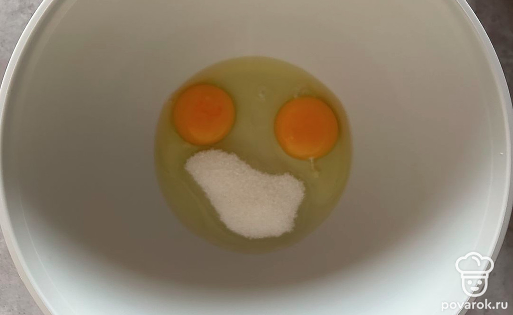 Яйца взбиваем с 1 столовой ложкой сахара.