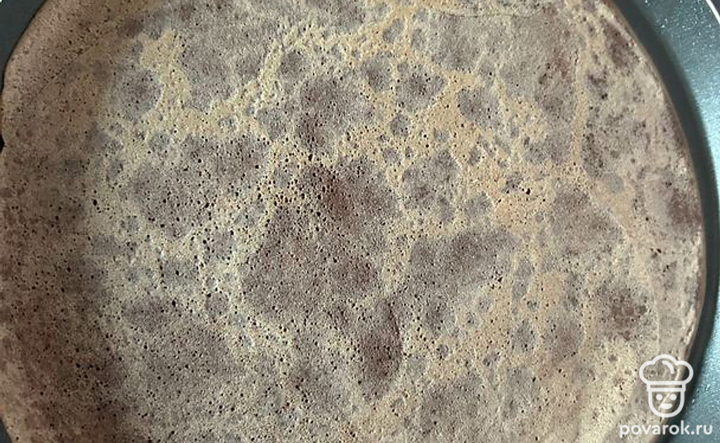 Наливаем небольшое количество теста на сковороду и выпекаем блинчики с двух сторон.