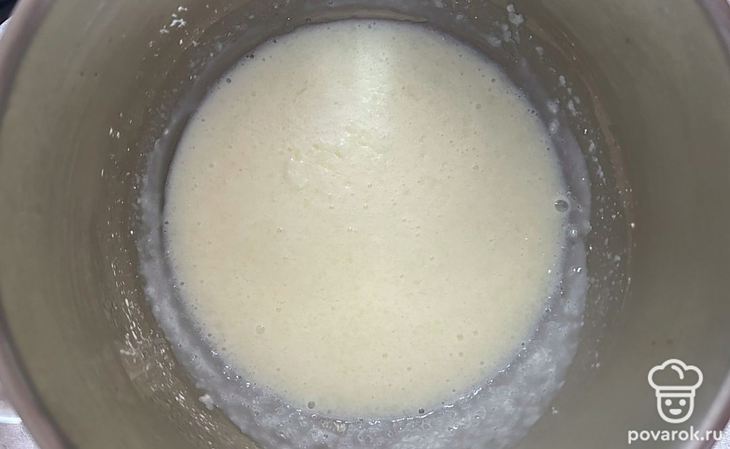 Смешиваем крахмал, 3 столовые ложки сахара, 350 миллилитров молока и варим до загустения. Остужаем наш крем.