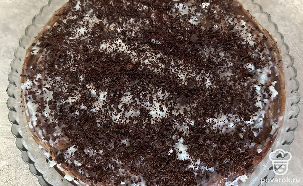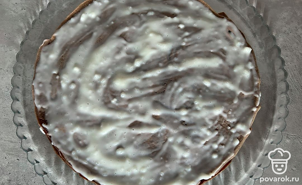 Каждый блинчик промазываем кремом. Ставим в холодильник примерно на 1 час.