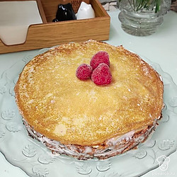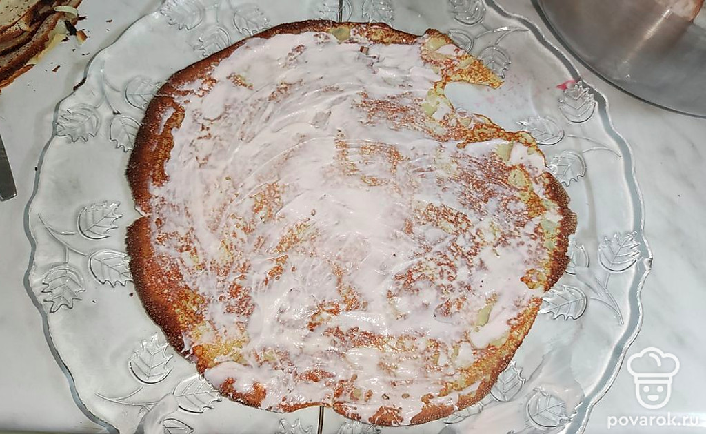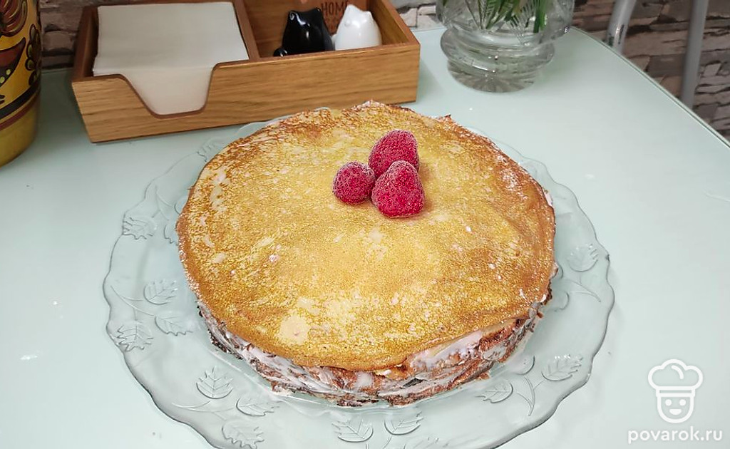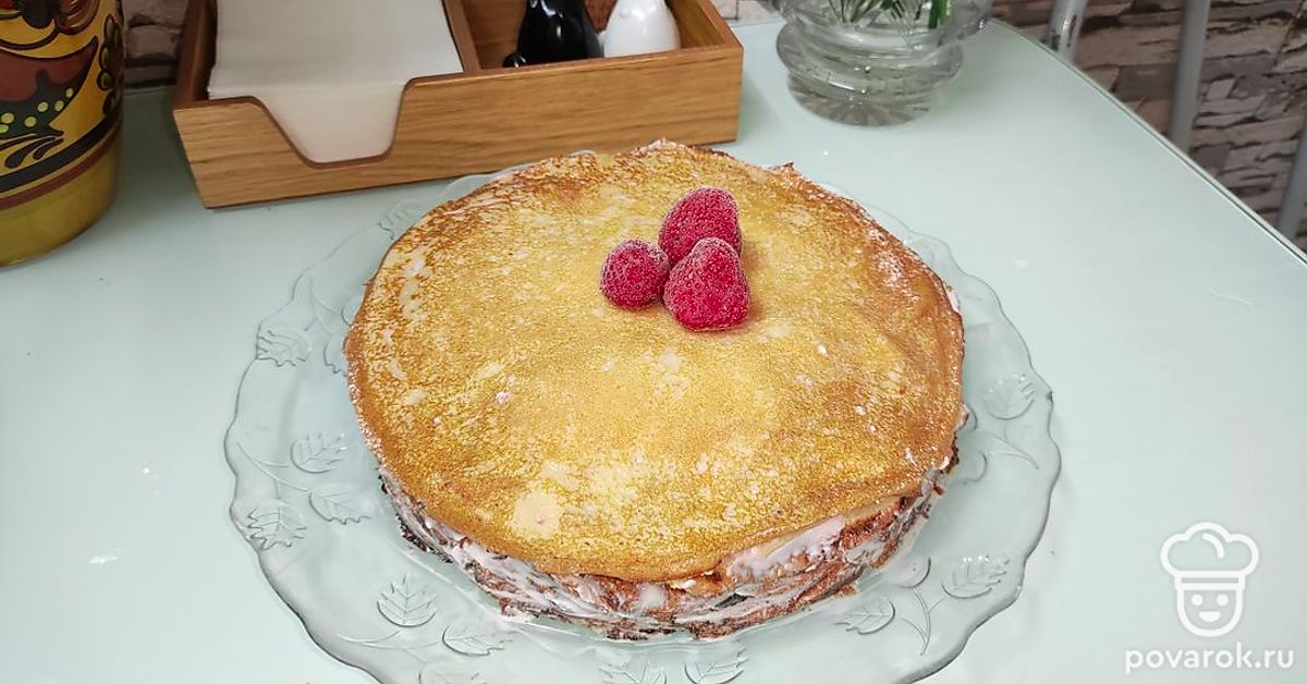 Приготовим вкусный блинный торт с нежным творожным кремом и вишней.