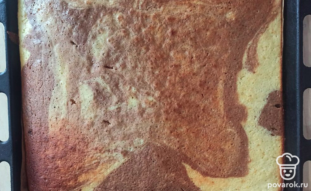 Разделить тесто пополам, в одну половину добавить 3 столовые ложки какао.