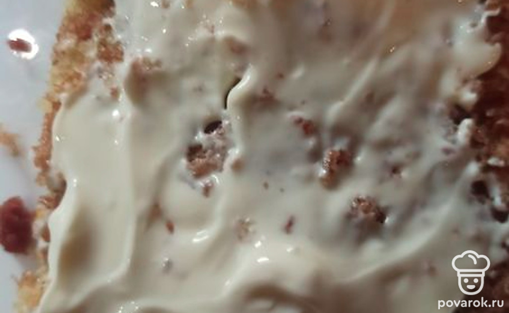 Смешать 0,5 стакана сахара, 3 столовые ложки какао, 1 столовую ложку молока, закипятить. Добавить 30 граммов сливочного масла. Перемешать. Полить торт получившейся помадкой.