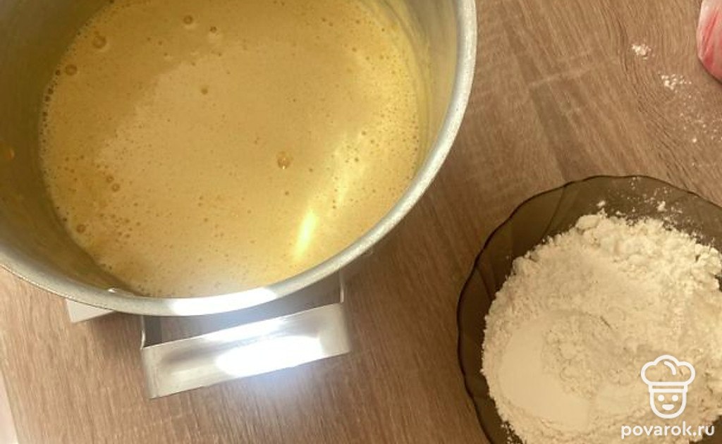 Постоянно помешиваем до образования светлой массы (масса может немного увеличиться).