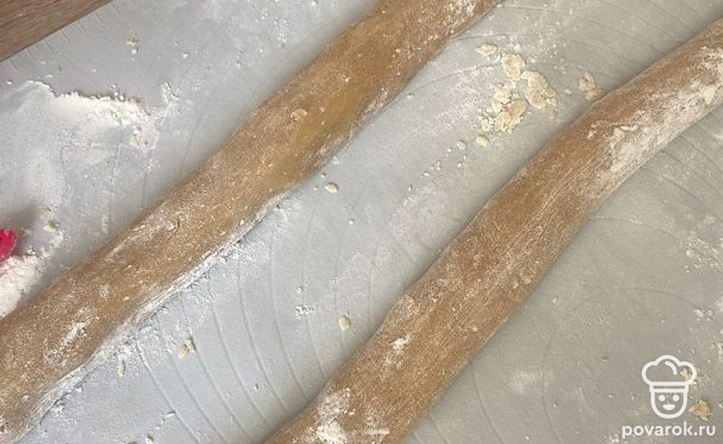 Раскатываем тесто в жгут (я сделала в 2 жгута).