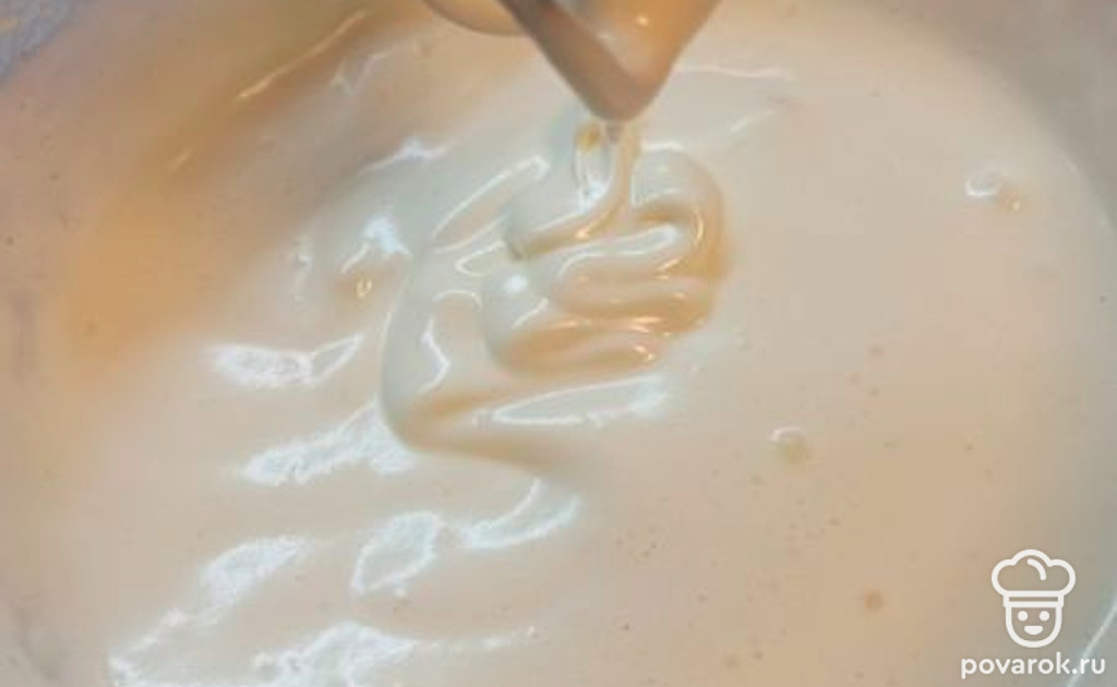 Яйца взбиваем с сахаром, до устойчивой пены.