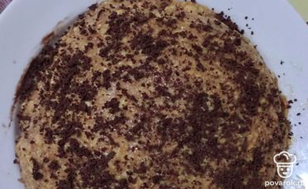 Смешать крошку с кремом, сформировать руками горку и поставить в холодильник на ночь.