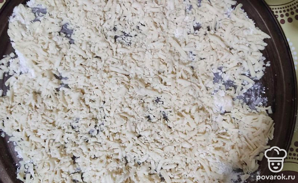 Натереть подмороженное тесто на крупной терке и поставить выпекать в духовку при 150 градусах на 25 минут.