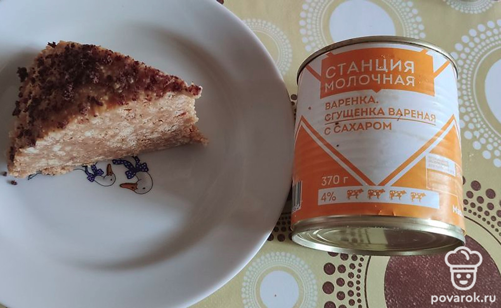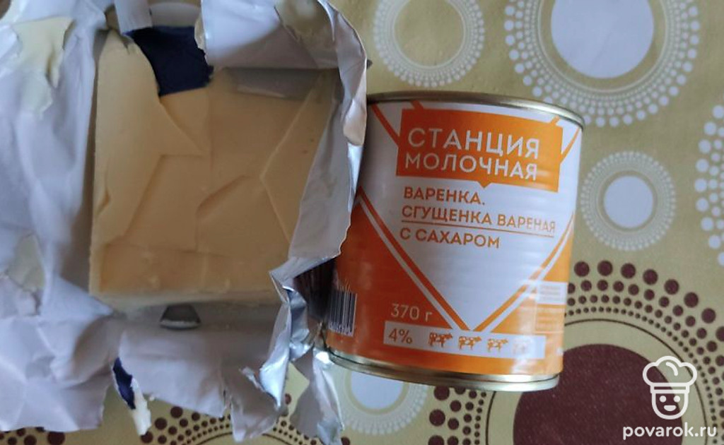 Для крема смешать 1 банку вареной сгущенки с 1 пачкой сливочного масла (180 грамм).