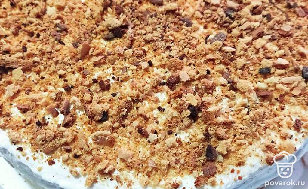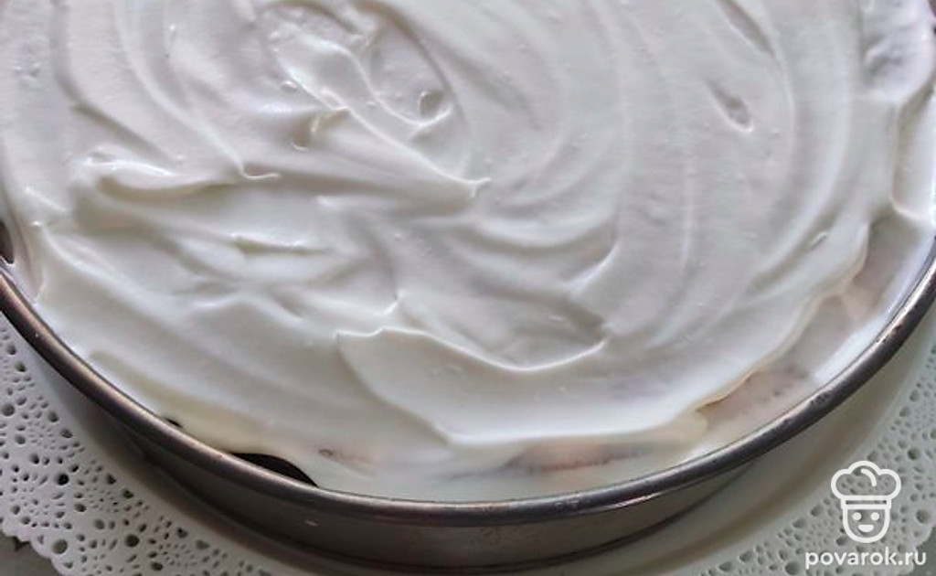 Простоить каждый корж кремом и оставить на 3-5 часов в холодильнике для пропитки.