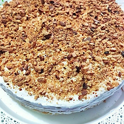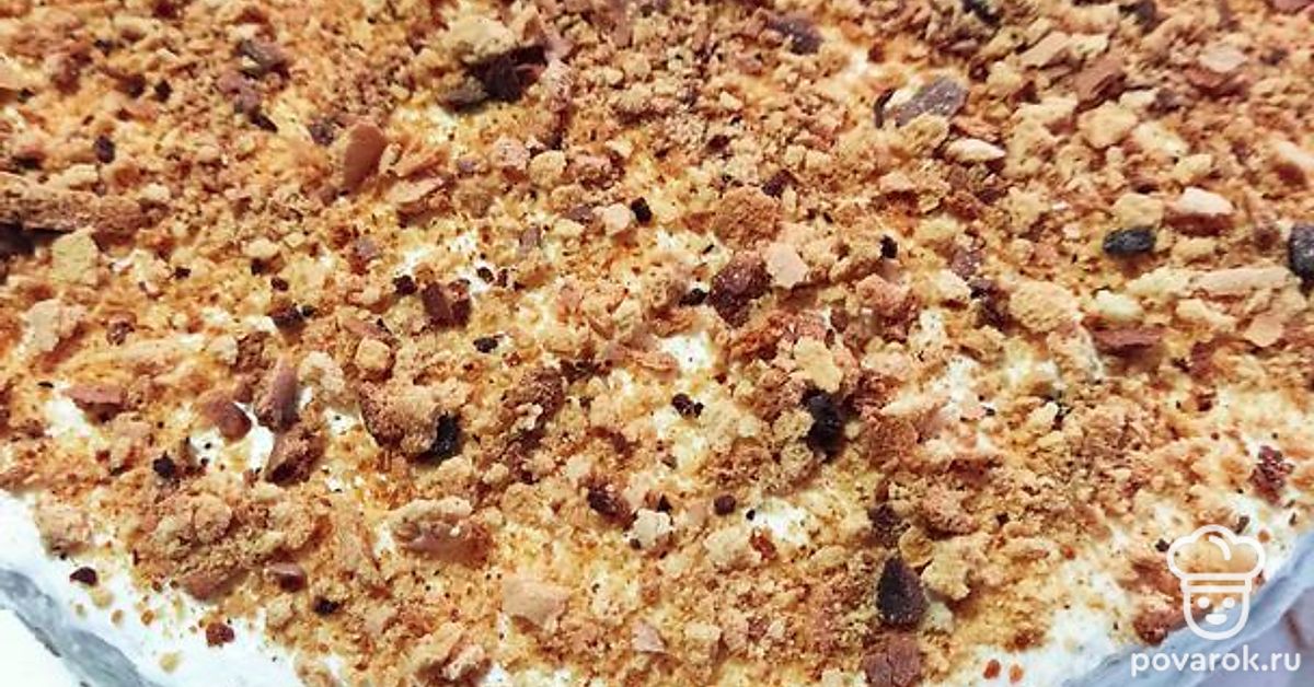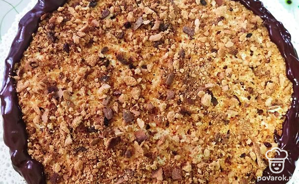 Украсить можно крошкой из обрезков коржей, шоколадом.