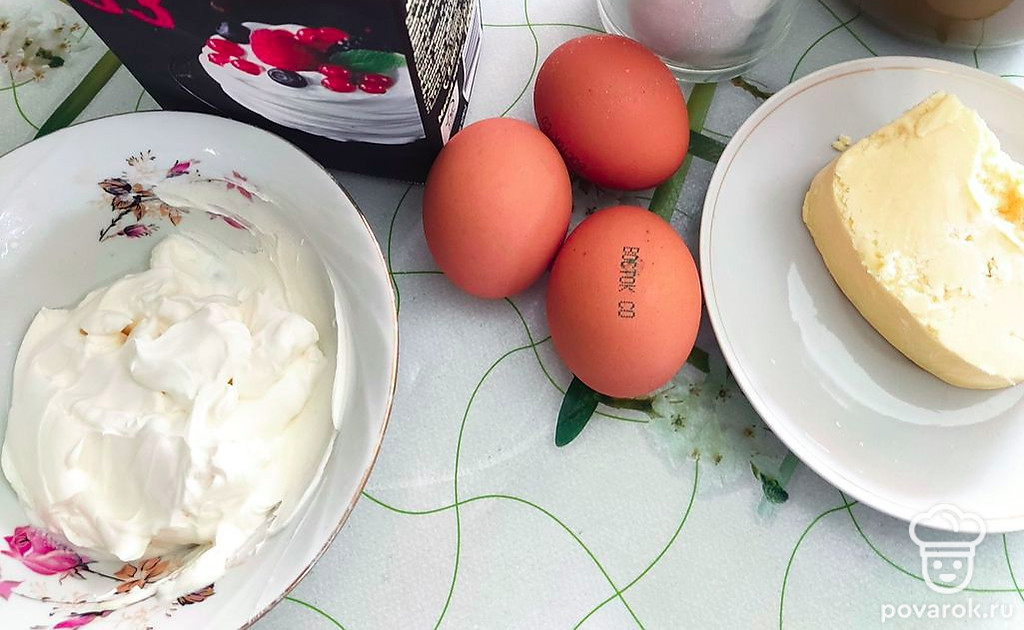 Приготовить крем. Сливки лучше брать 33%, взбить с 0,5 стаканом сахара и сметаной до густоты.