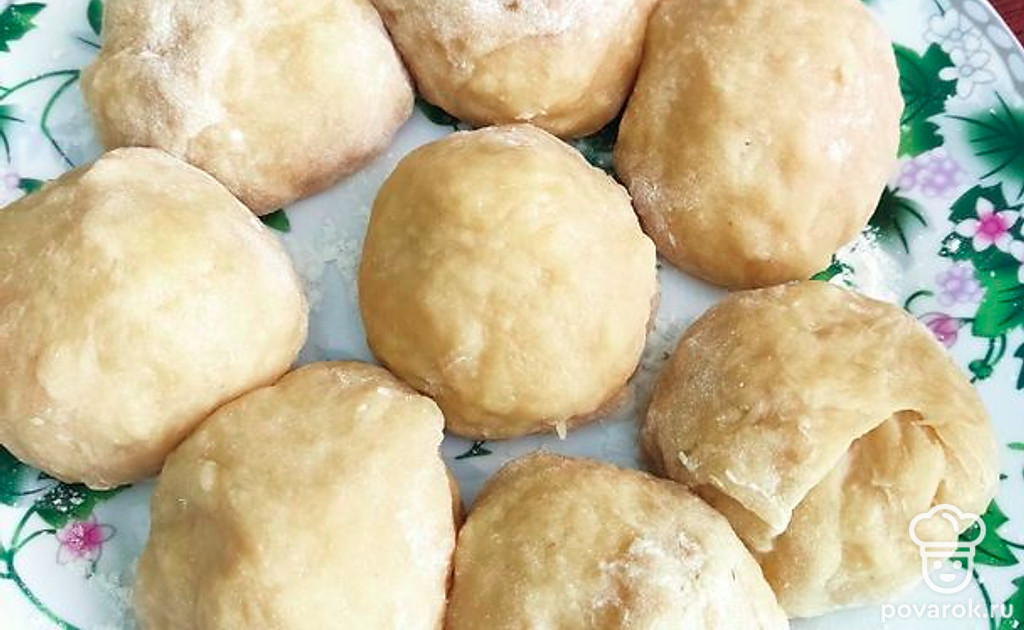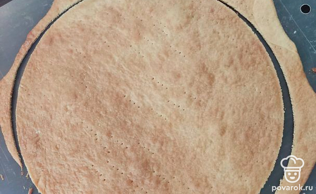 Разделить тесто на 8 частей. Раскатать каждую в круг, выпечь при температуре 180 градусов около 3 минут.