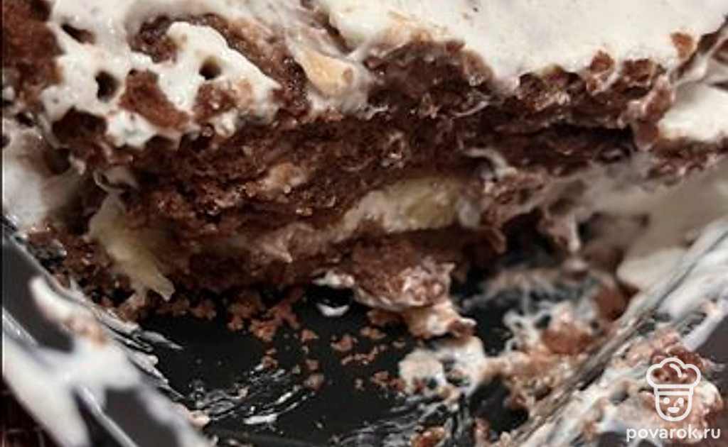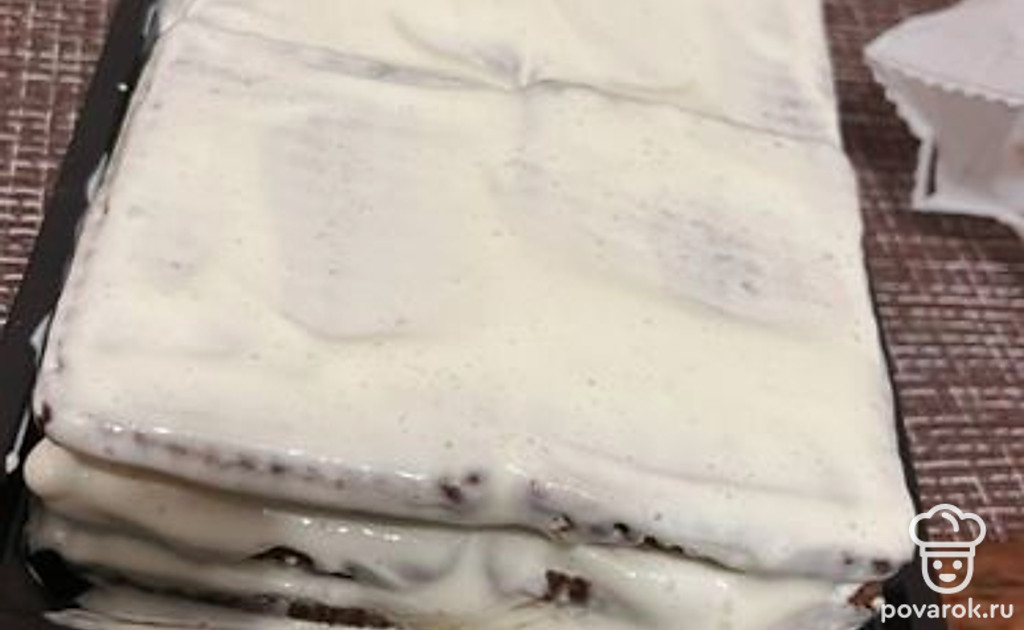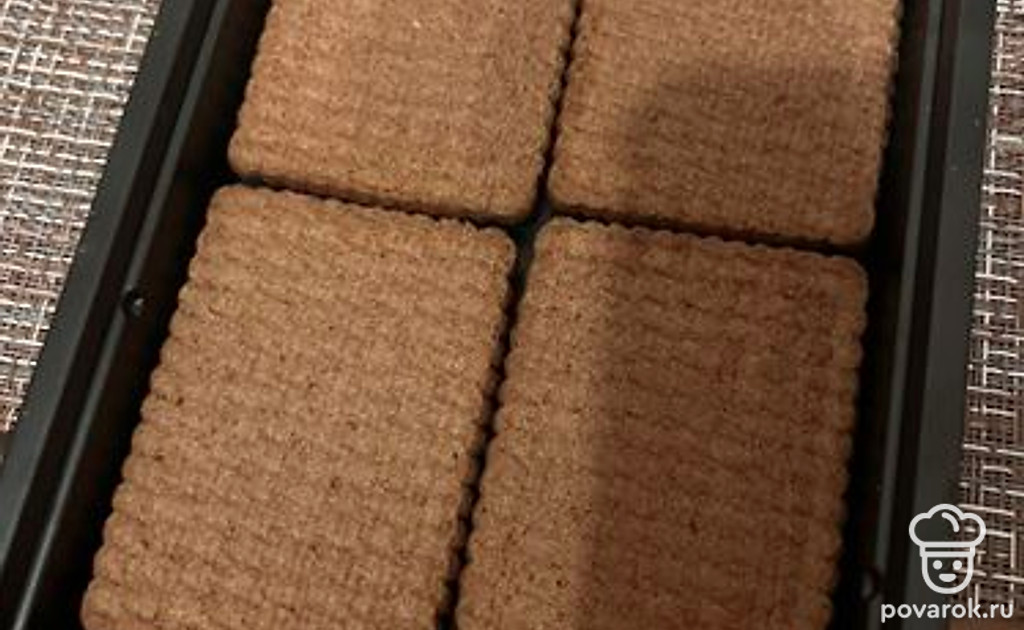 Уклываем слои, как в предыдущем шаге, пока не закончится пачка с печеньем. Оставляем пропитаться.