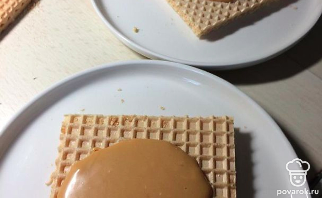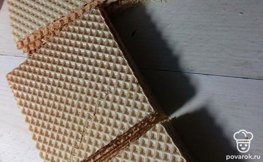 Листы вафель нарежьте (размер на ваше усмотрение).