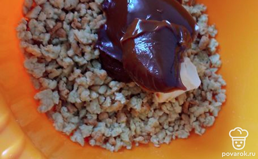 Готовое тесто смешиваем со сгущенкой и маслом.