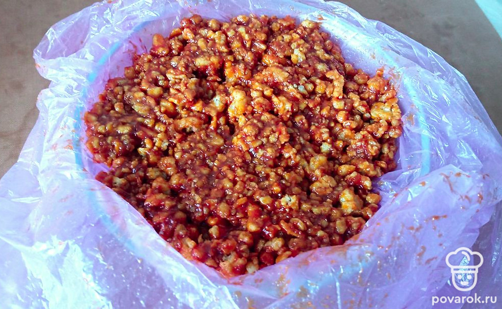 Маргарин смешать с мукой, содой и замешиваем тесто. Убрать в морозилку на пару часов.