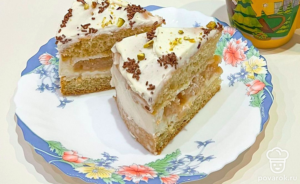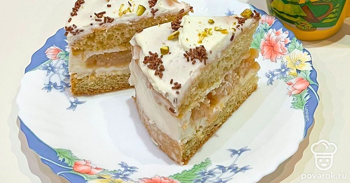 Торт выходит очень летним, свежим и интересным. Сочетание груши и творожно-сливочного крема не оставит равнодушных!